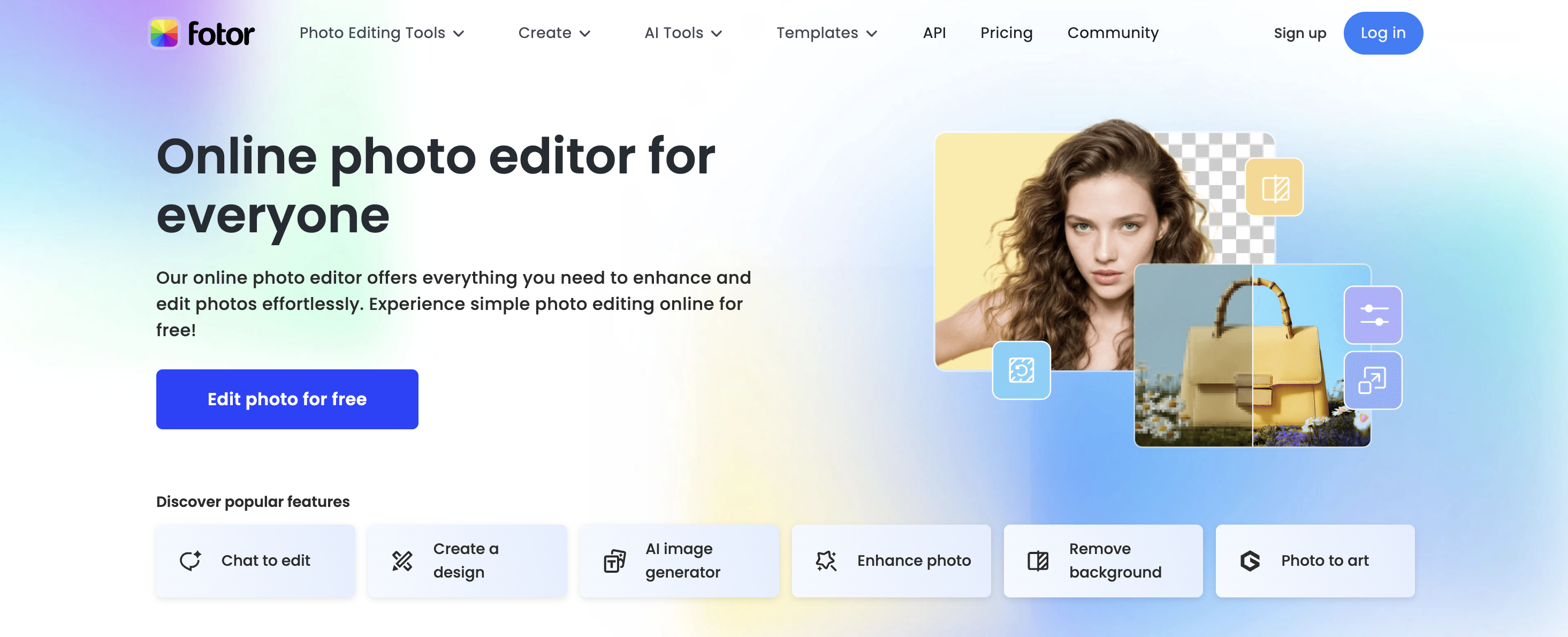 Fotor describes itself as an editor that offers “everything you need to enhance and edit photos effortlessly.” It combines traditional photo editing tools with AI-powered background features.