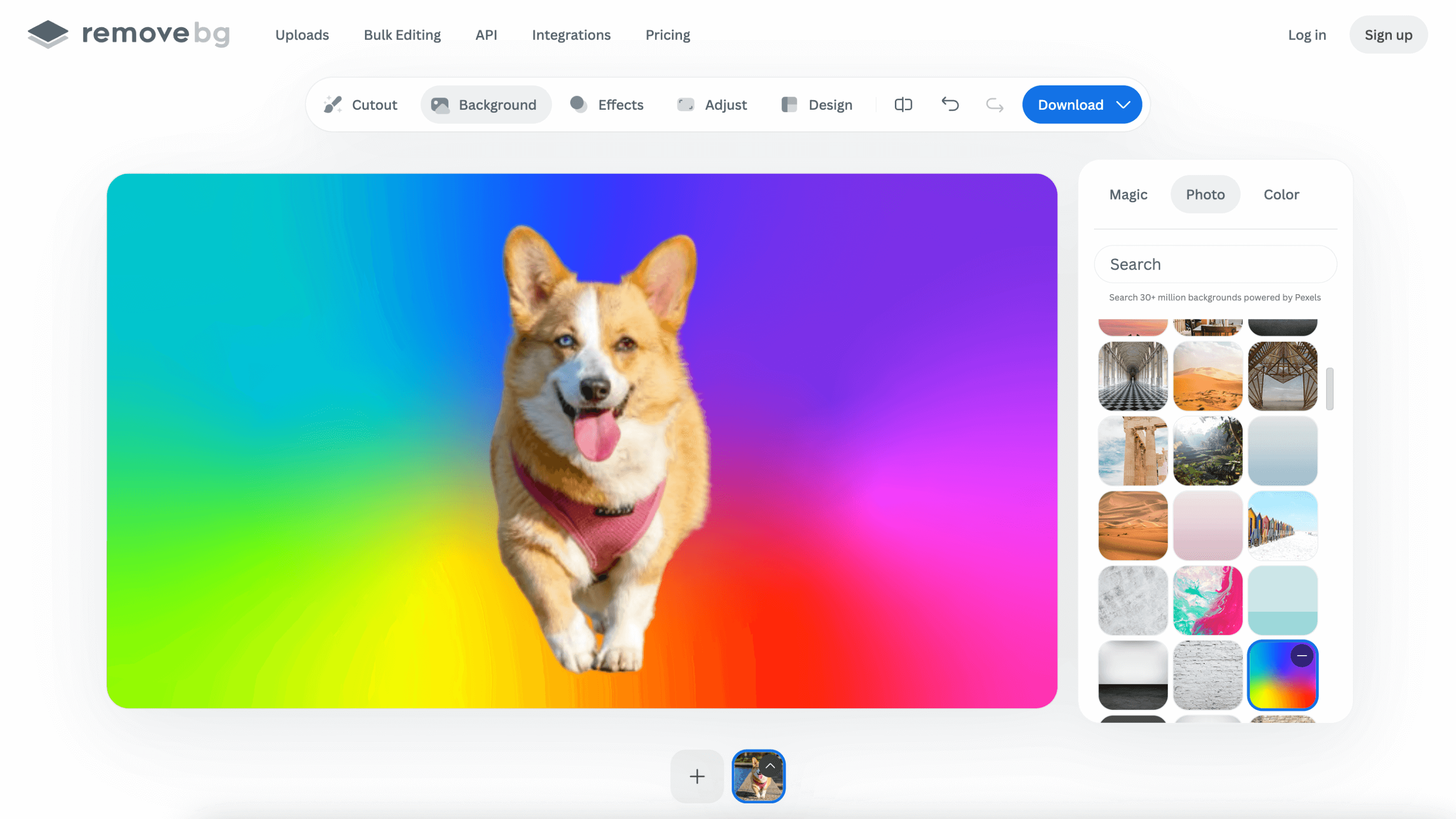 If you want to keep editing the image, you can select > background, and choose among thousands of backgrounds or upload your own.