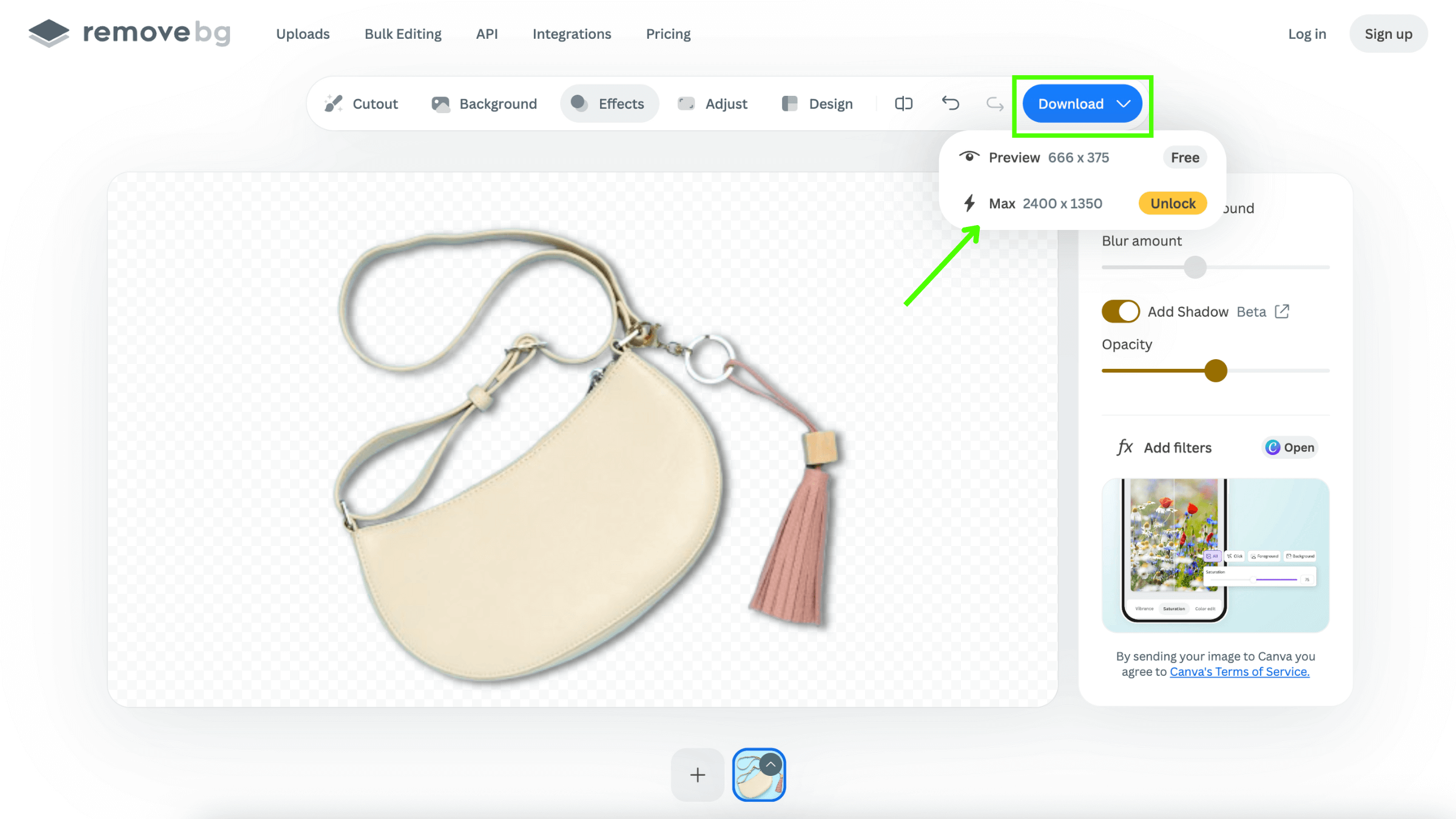 To download the image in high resolution, you will need to use one remove.bg credit. But no worries, when you sign up for the first time, you get one credit for free — so you can see exactly what type of results you get before committing to anything.