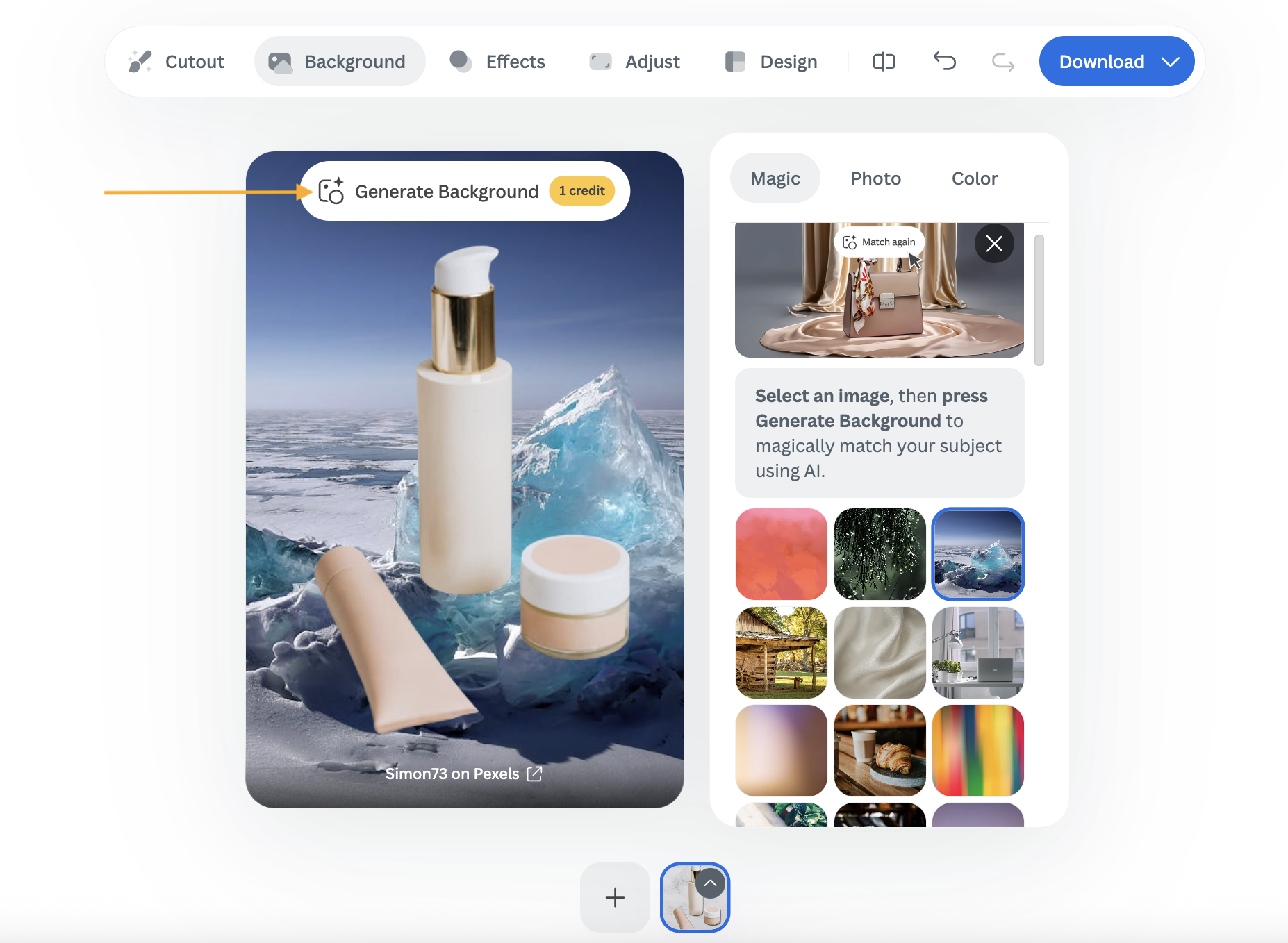 Choose a background that fits your brand or message, and the AI will use that as inspiration. Then, click on “Generate Background.”