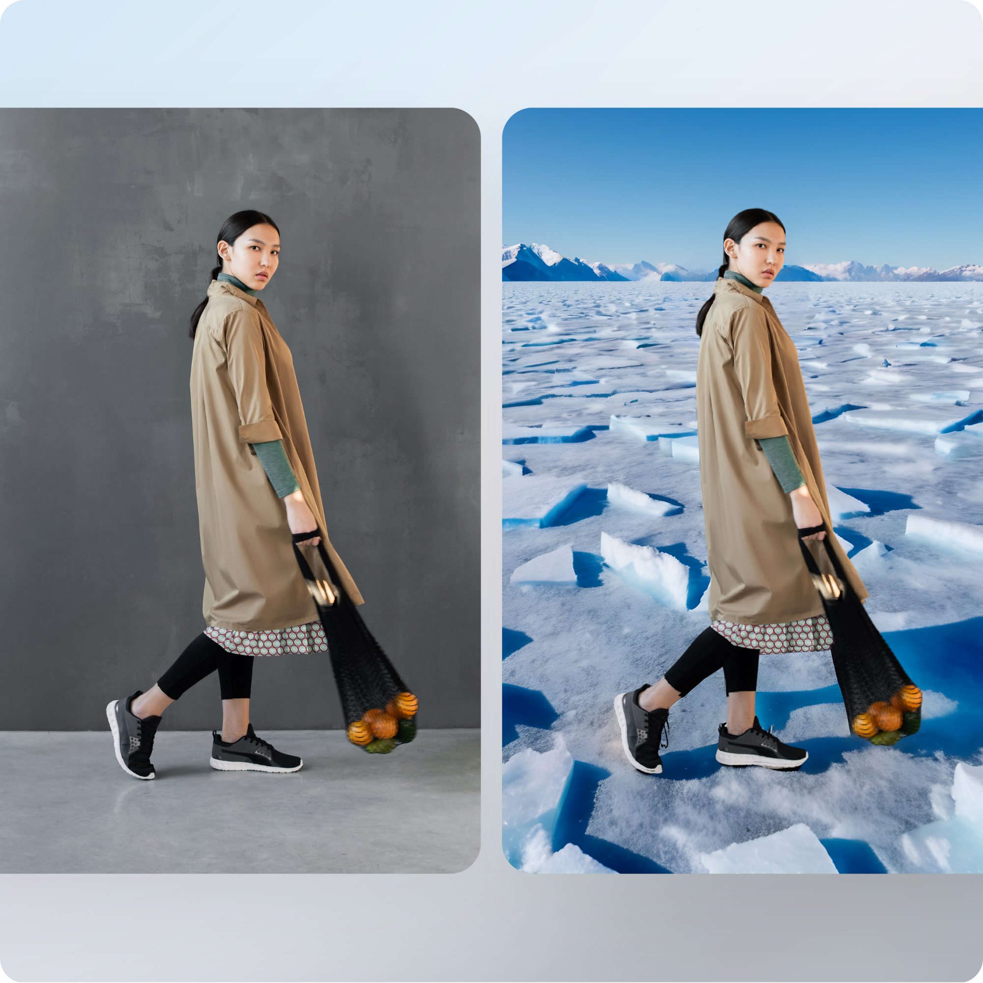 E-commerce brands can keep their feeds fresh and engaging by instantly generating new, eye-catching backgrounds for product shots.