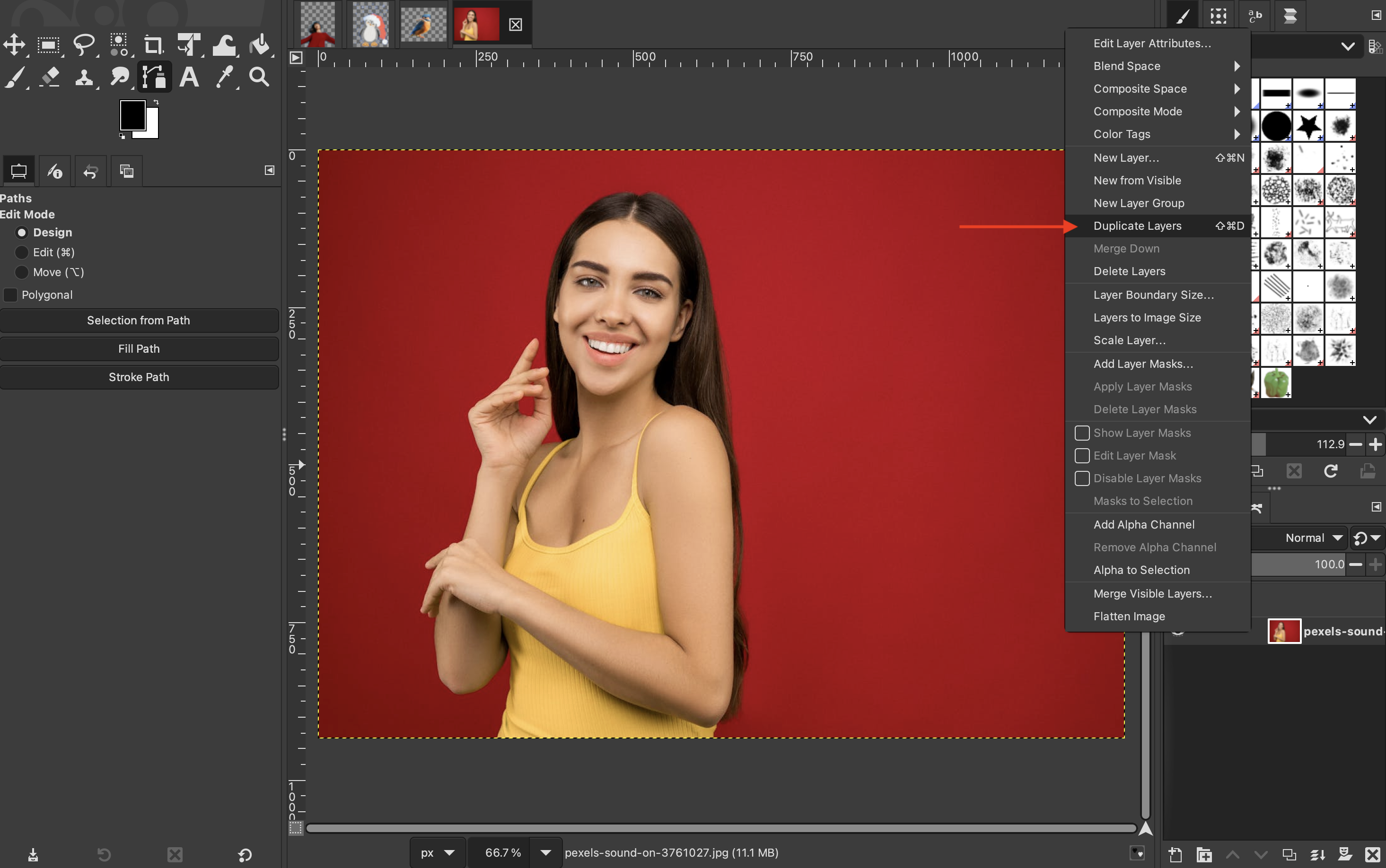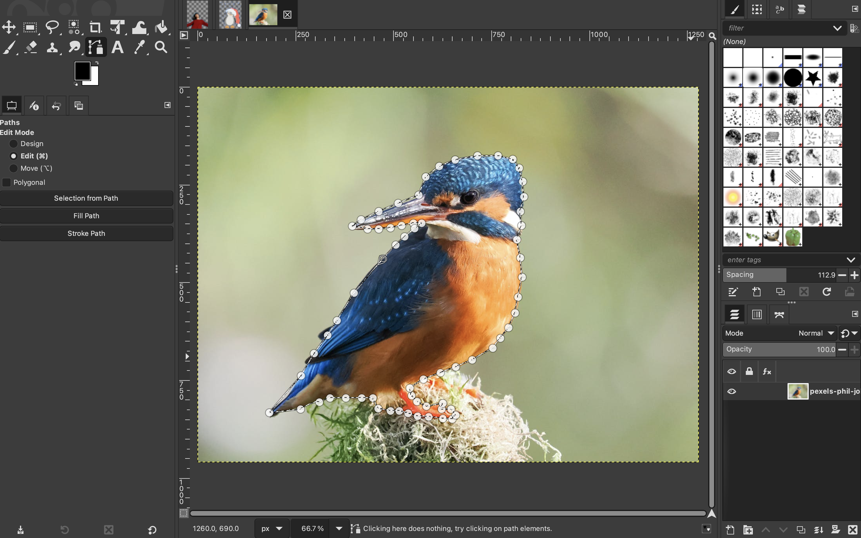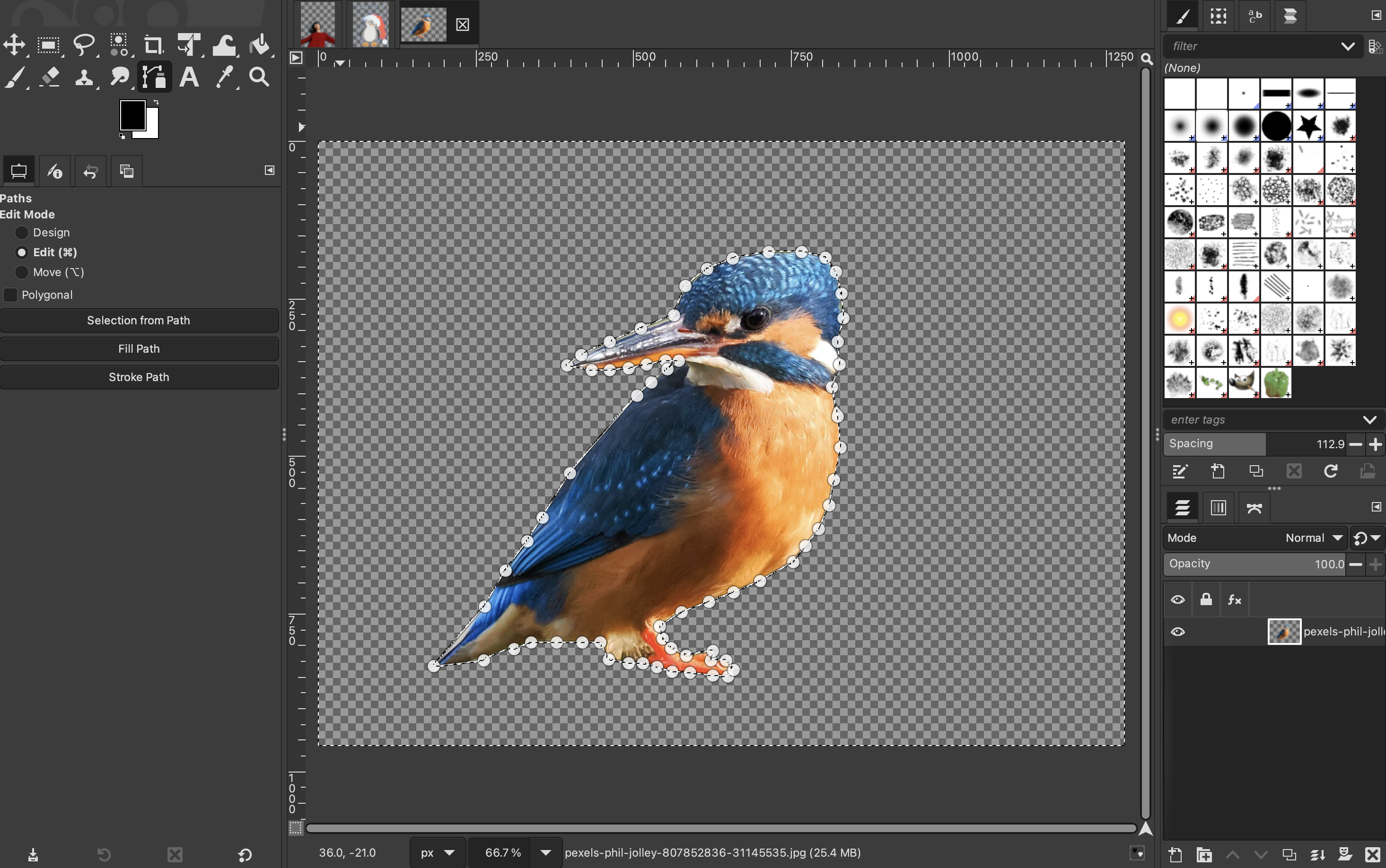 Once you are finished, you can close the path by holding “Control” and clicking on your original point. Then press “Enter” on your keyboard to create a selection around your subject.