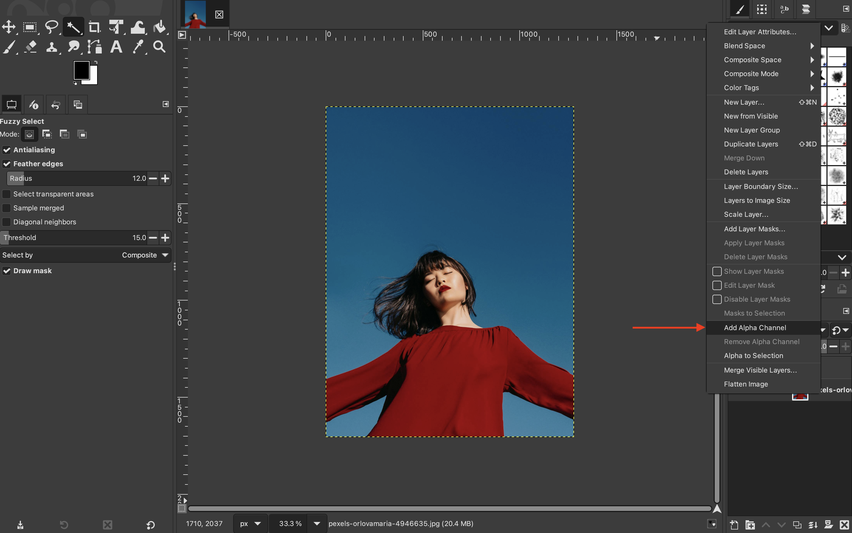 Then, right-click your original layer and go to “Add layer mask.”
