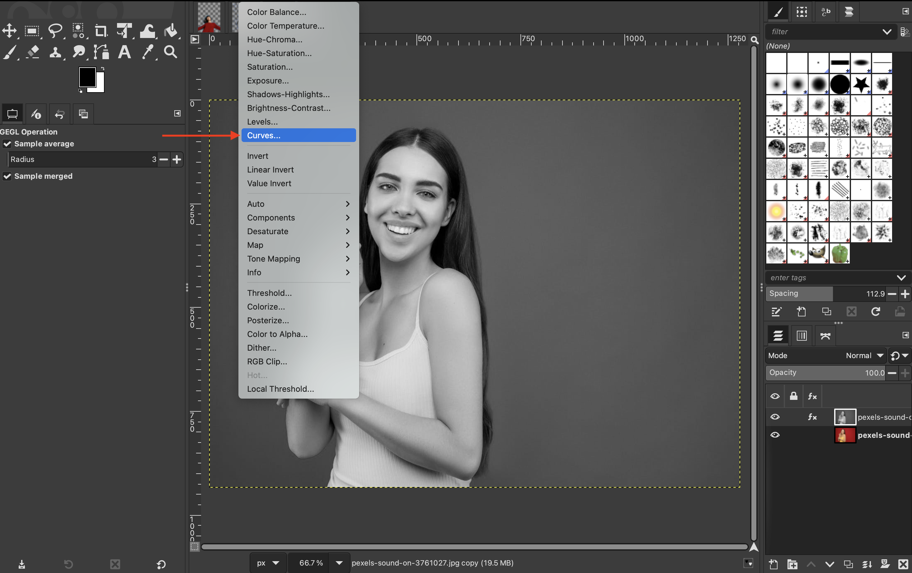 Then go back to “Colors” and select “Curves.”
