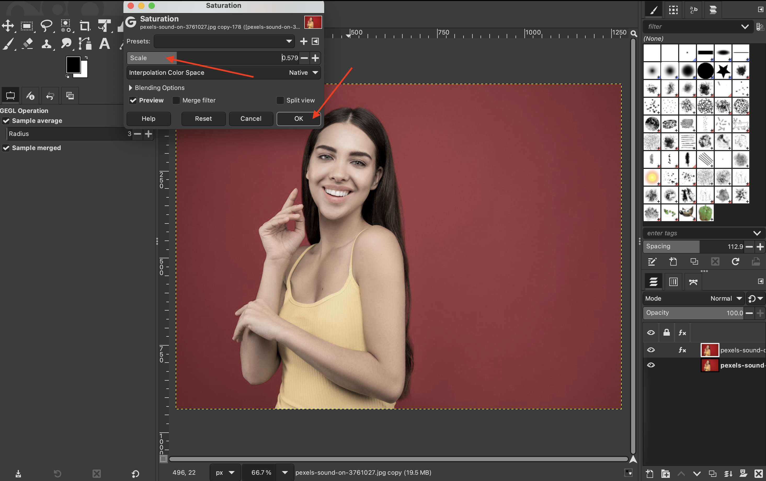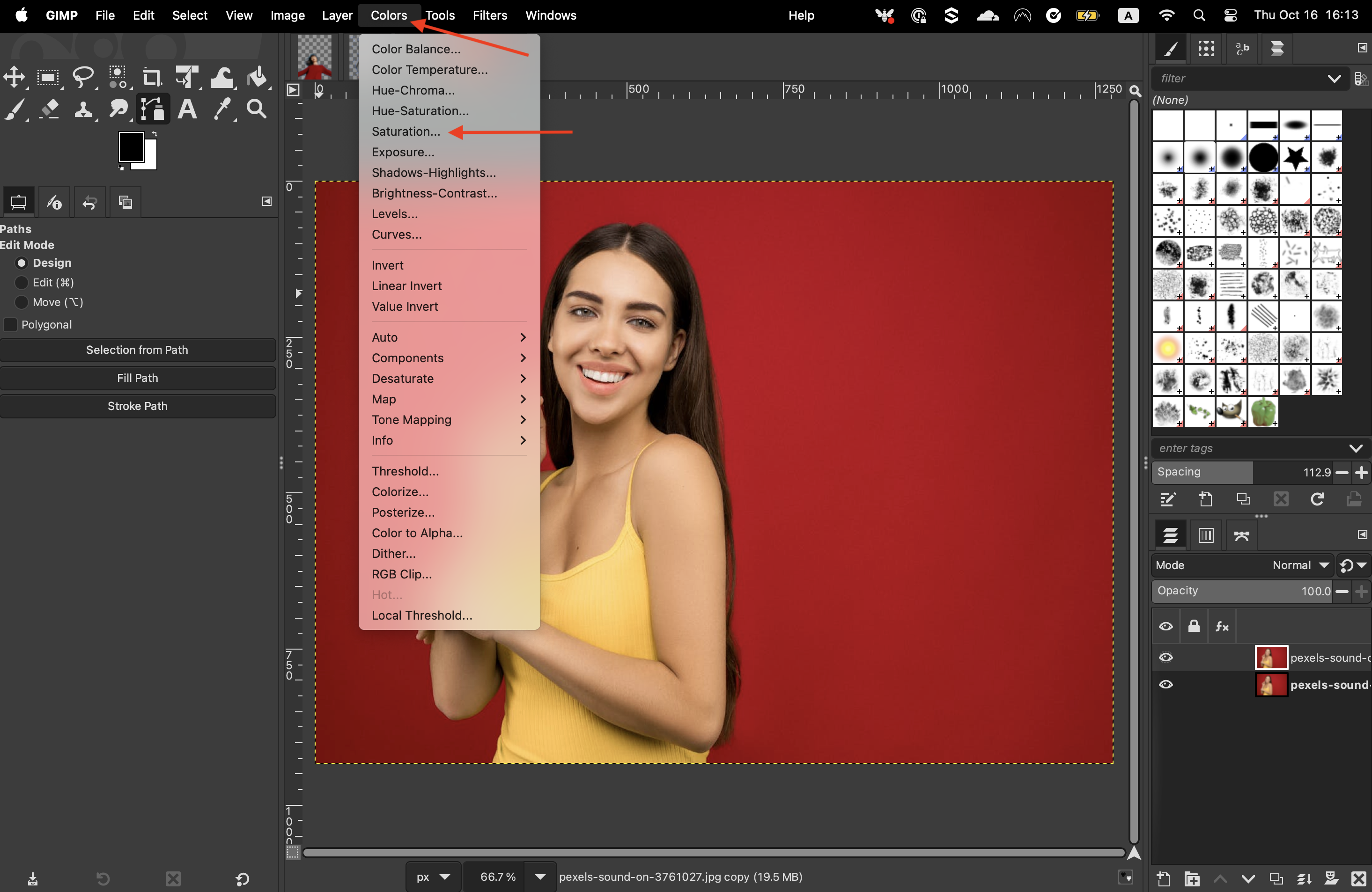 Then, on the menu, click on “Colors” > “Saturation.”