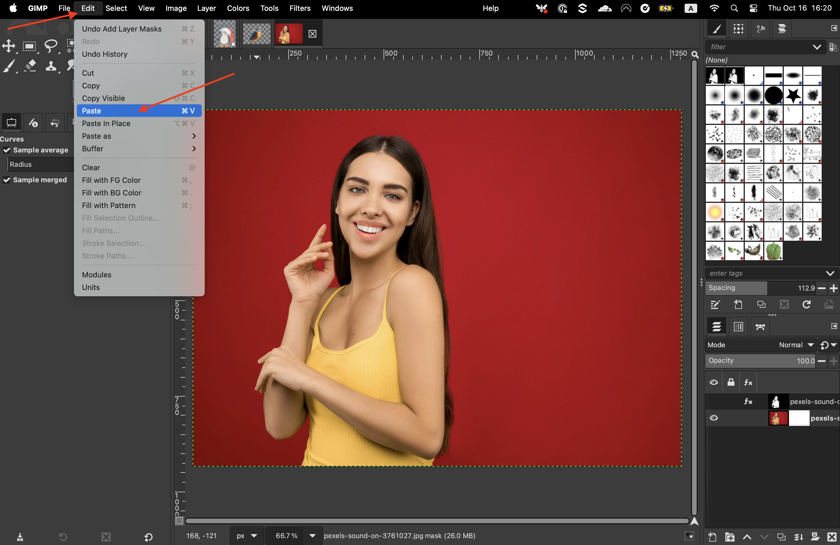 Then, from the menu bar, click on “Edit” > “Paste”, and click the anchor icon at the bottom of the page, to place that into the layer mask.