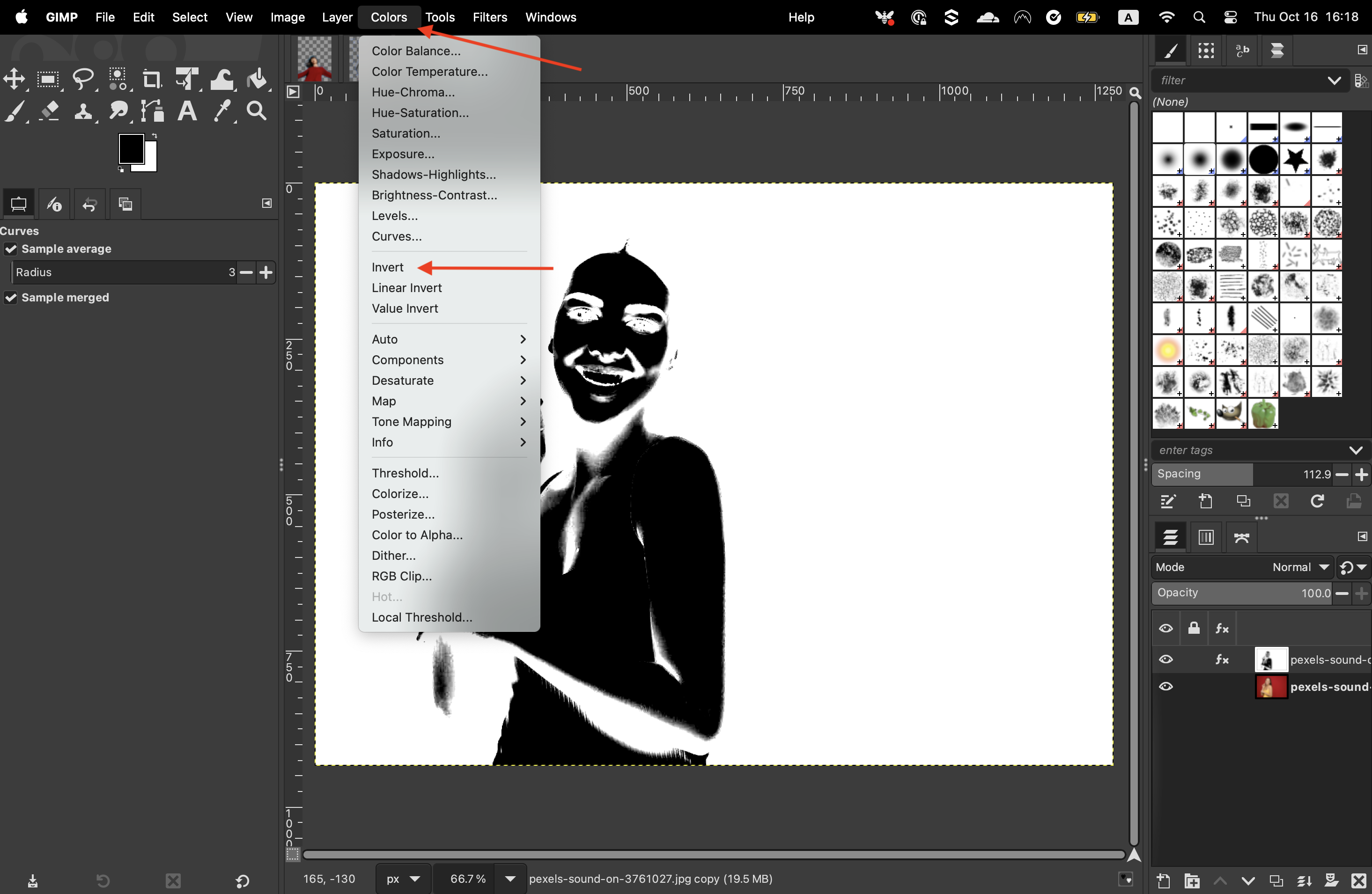 Then invert the colors by going to “Colors” > “Invert.”